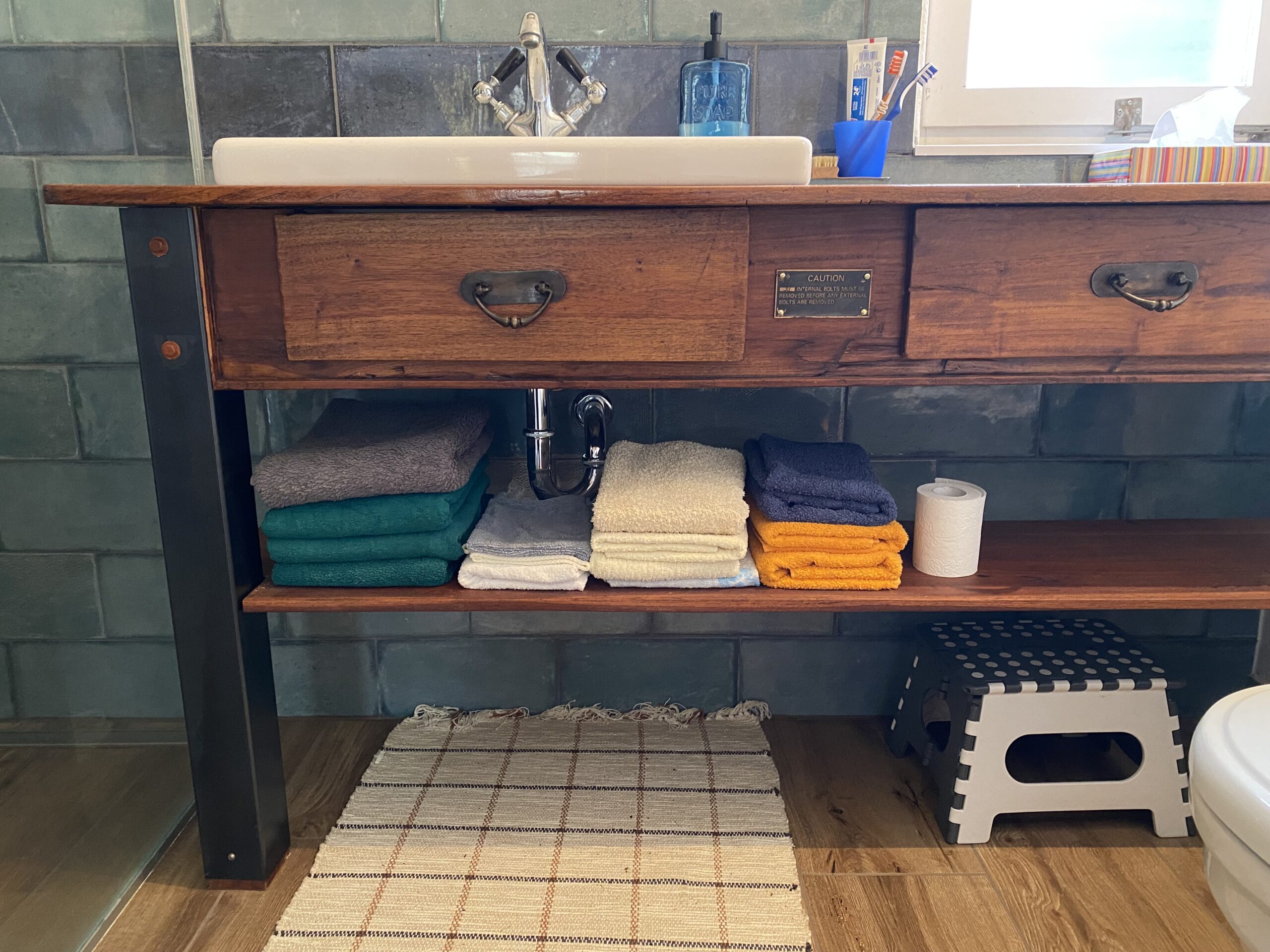 This object caught me off-guard when I bought it. Nevertheless I made the best of it and transformed into this vanity for a bathroom. (2000’s?)