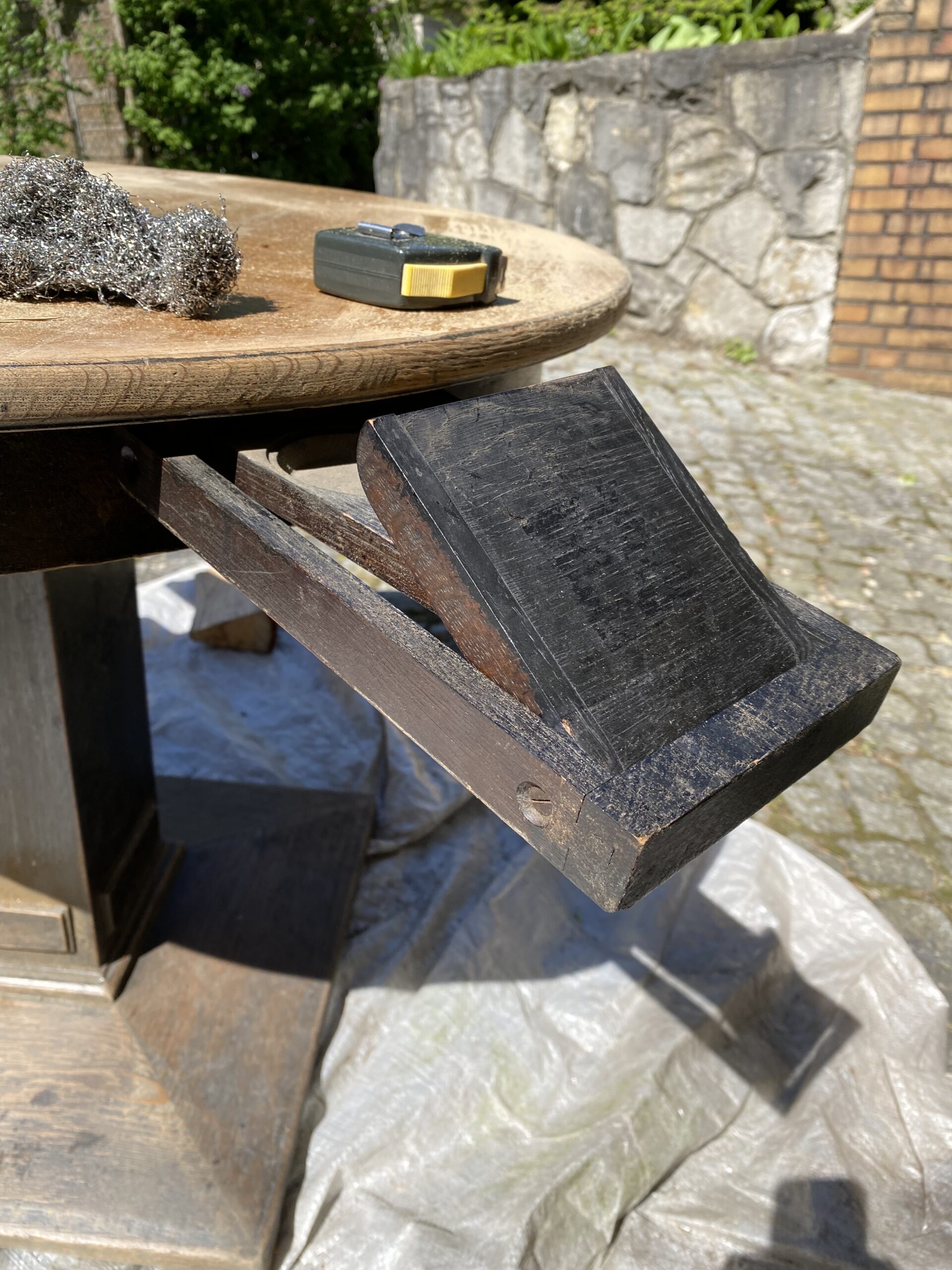 This table came out a pub in „SO36“ Berlin that close its doors for good. After decades of abuse, it smelled like stale smoke and was covered with scratches and bubble gum. (1920’s- 1930’s)
